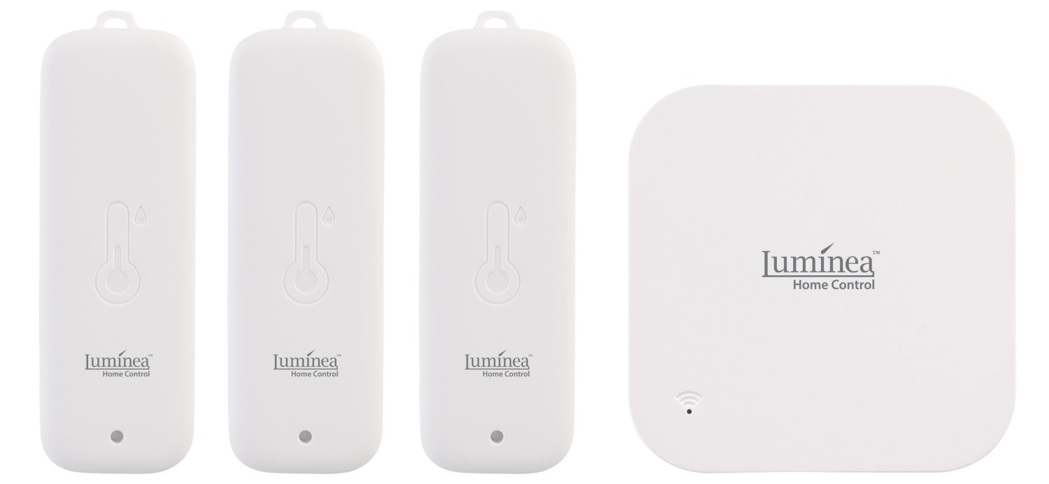 Luminea Home Control bietet mit dem Set HS-100 drei wetterfeste Funk-Sensoren (IP65) sowie ein WLAN-Gateway mit integriertem Thermo- und Hygrometer an.